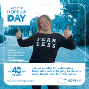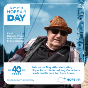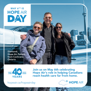 Partagez ce message sur les réseaux sociaux le 6 mai afin que davantage de familles ayant besoin d'une aide au transport puissent découvrir les programmes de Hope Air