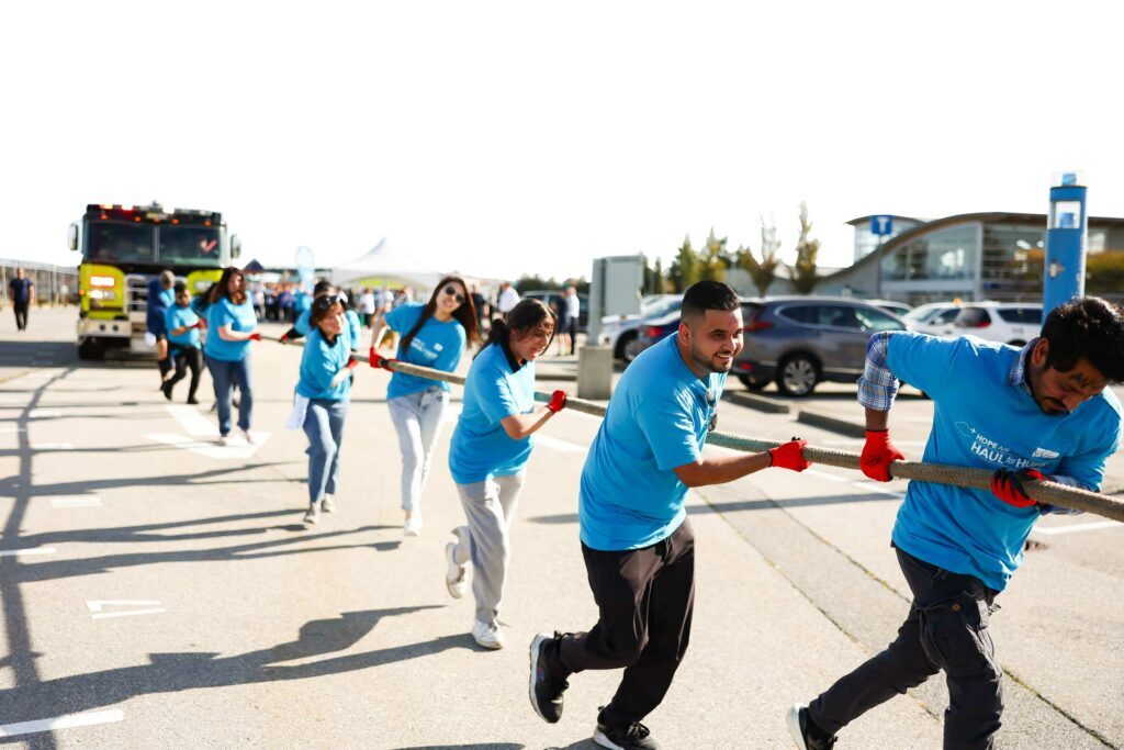 Haul for Hope est un test de travail d’équipe, de détermination et de collecte de fonds. Les équipes impliquées l’ont prouvé à chaque étape de la traction sur 100 mètres d’un avion Dash-8 de Porter pesant 60 000 livres à l’aéroport YTZ de Toronto et d’un camion de pompiers Red 9 de 50 000 livres à l’aéroport YVR de Vancouver.