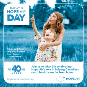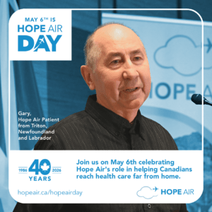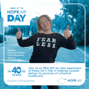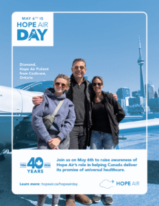 Share this message on social media on May 6th so that more families in need of travel support can find out about Hope Air programs