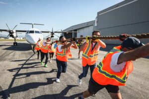 Castanet: Teams haul 67,000-pound plane in support of Hope Air at KF Centre for Excellence Watch on Castanet Grit, teamwork, and raw muscle power were on full display Thursday morning